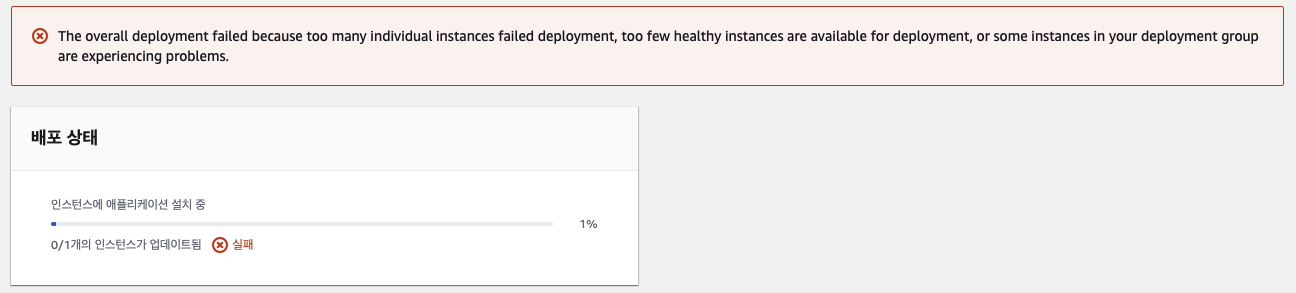 CodeDeploy의 배포에서 보니까 이런 에러가 발생했다.