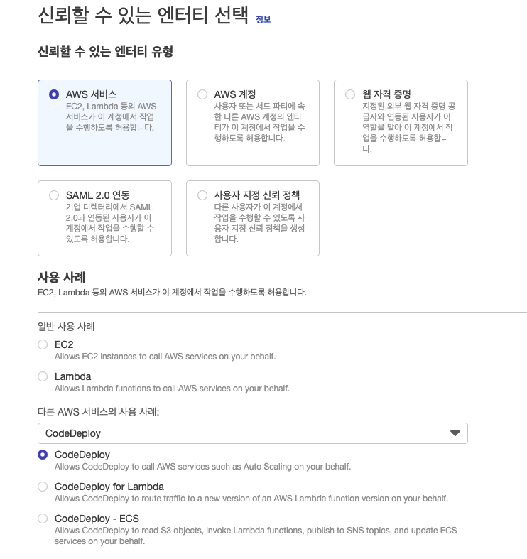 3. 이때 설치된 CodeDeploy에는 해당 역할을 실행 할 수 있는 자격증명이 없기에 위와 같은 에러가 발생 하는 것 입니다.