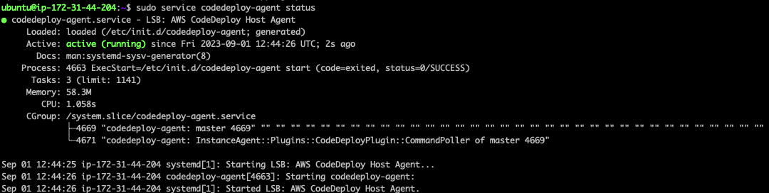 이 명령어로 CodeDeploy Agent를 재실행하면 된다.
