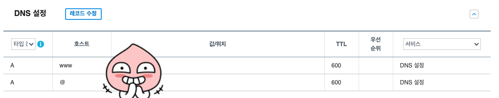 그 후에 이렇게 레코드 수정을 하면 도메인 등록이 된다!