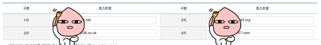 그러면 이런 화면이 나온다. 그중에서 NS 유형에 있는 오른쪽 4개의 값을 가비아에 입력해야 한다. 이때 맨 뒤 "."은 다 제거하고 입력한다.