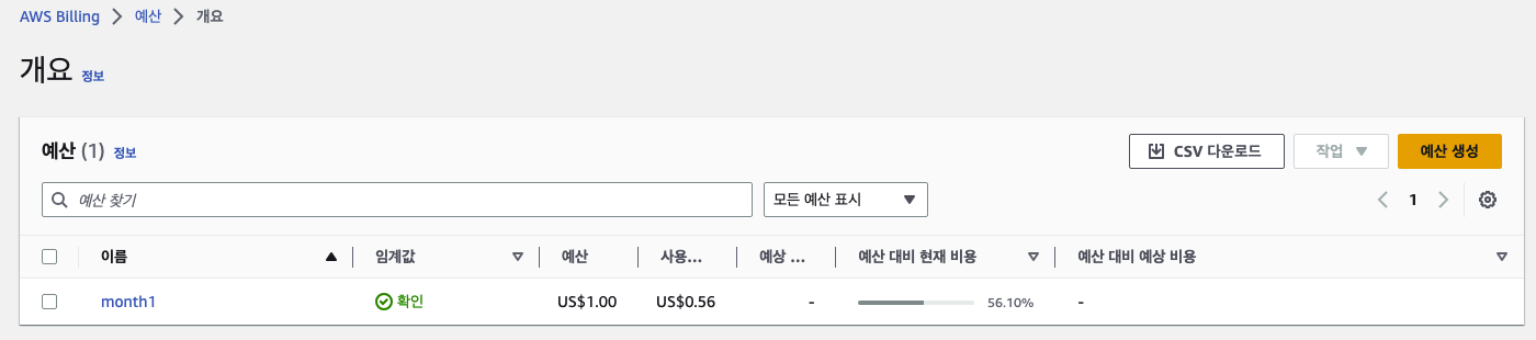 AWS Billing -> 예산 -> 예산 생성에 들어갔다.