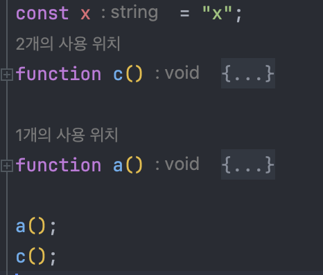 위 코드를 접어보면 최상위에는 c와 a가 있다.