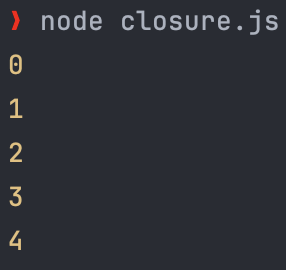 - 이제 비동기 부분이 실행되는데 i가 5가 되어있어서 출력 결과가 모두 5가 나오게 된다.