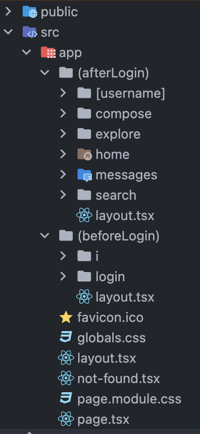- layout.tsx가 폴더 안에 있으면 밖에 있는 layout.tsx 대신 이 폴더 안에 있는 layout.tsx를 사용한다.