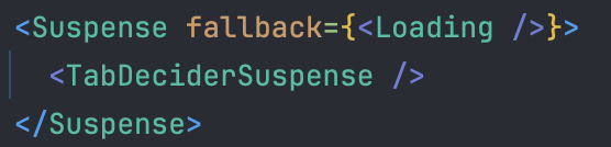 - 아래 사진처럼 Suspense를 TabDeciderSuspense 컴포넌트 안에 넣으면 안 된다.
