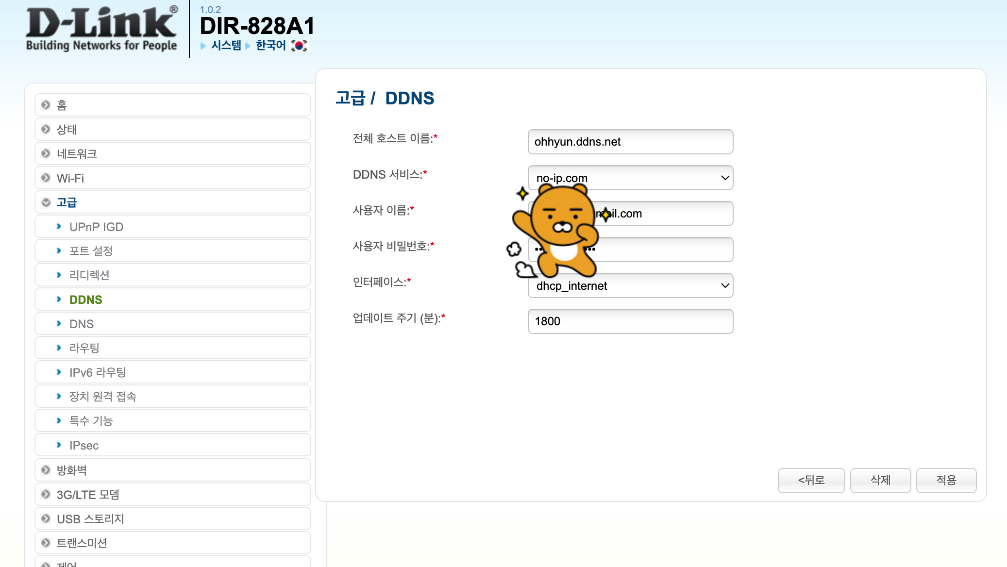 와이파이 설정 페이지의 DDNS로 갔다