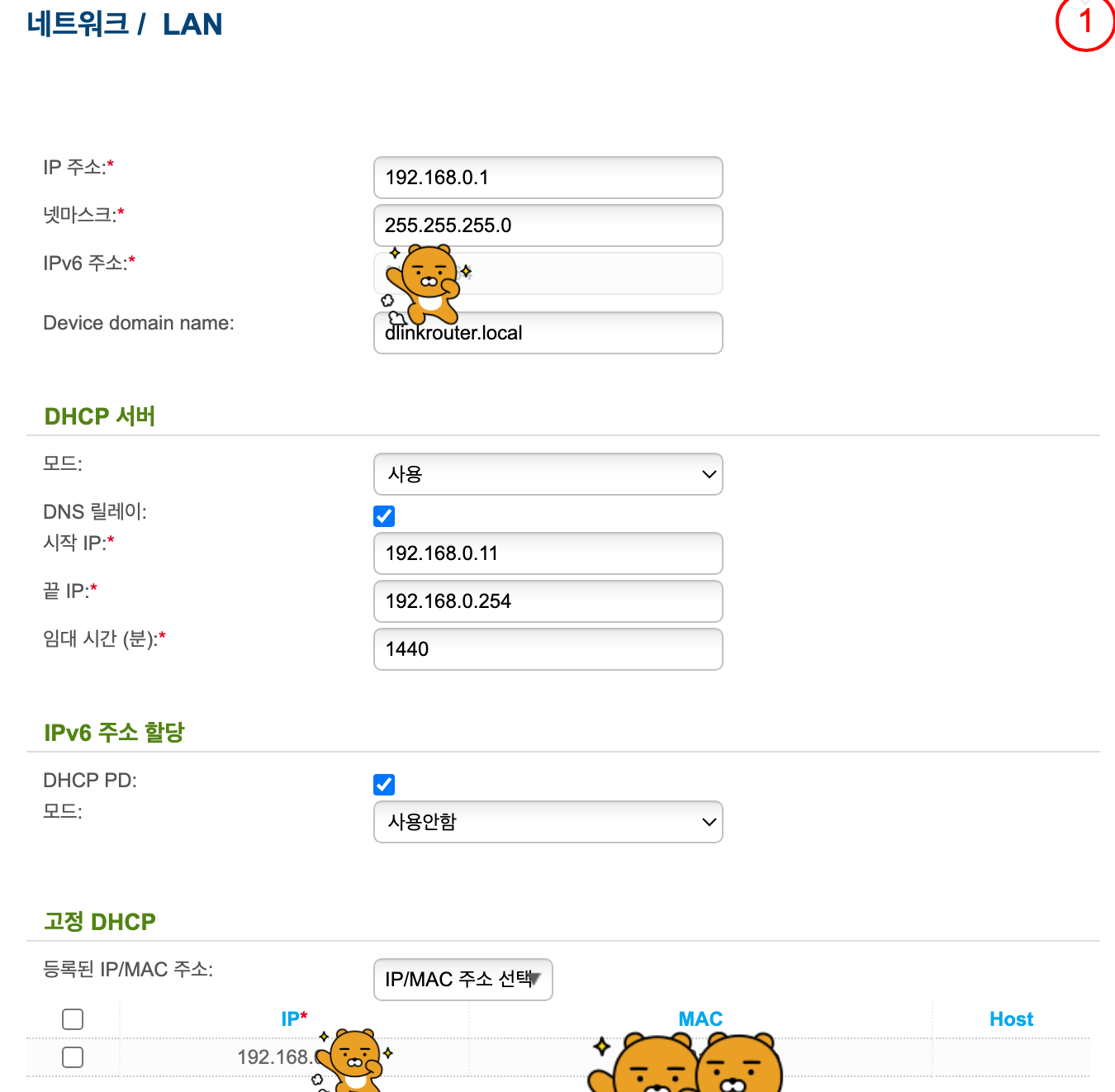 고정 DHCP 설정