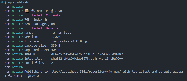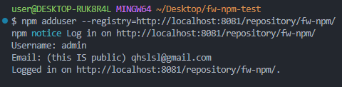 npm login http://localhost:8081/repository/fw-npm/