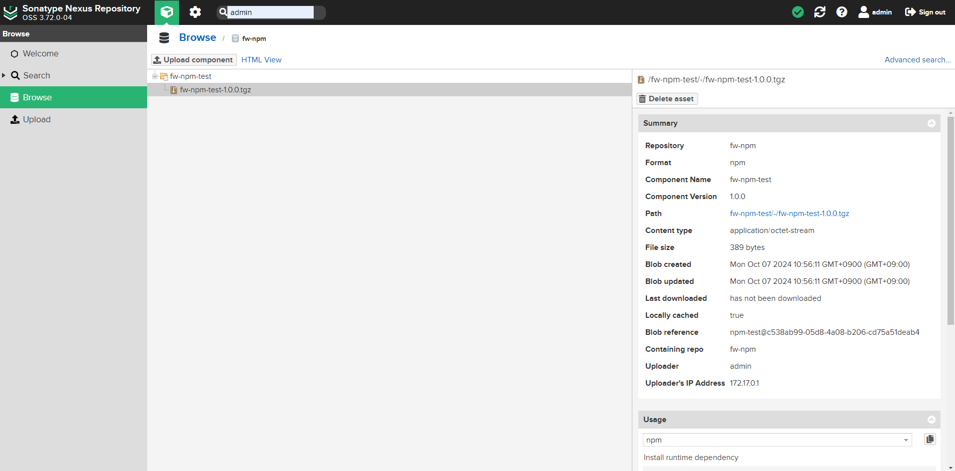 - nexus에 없는 라이브러리면 npm 저장소로 가서 라이브러리를 다운로드한다