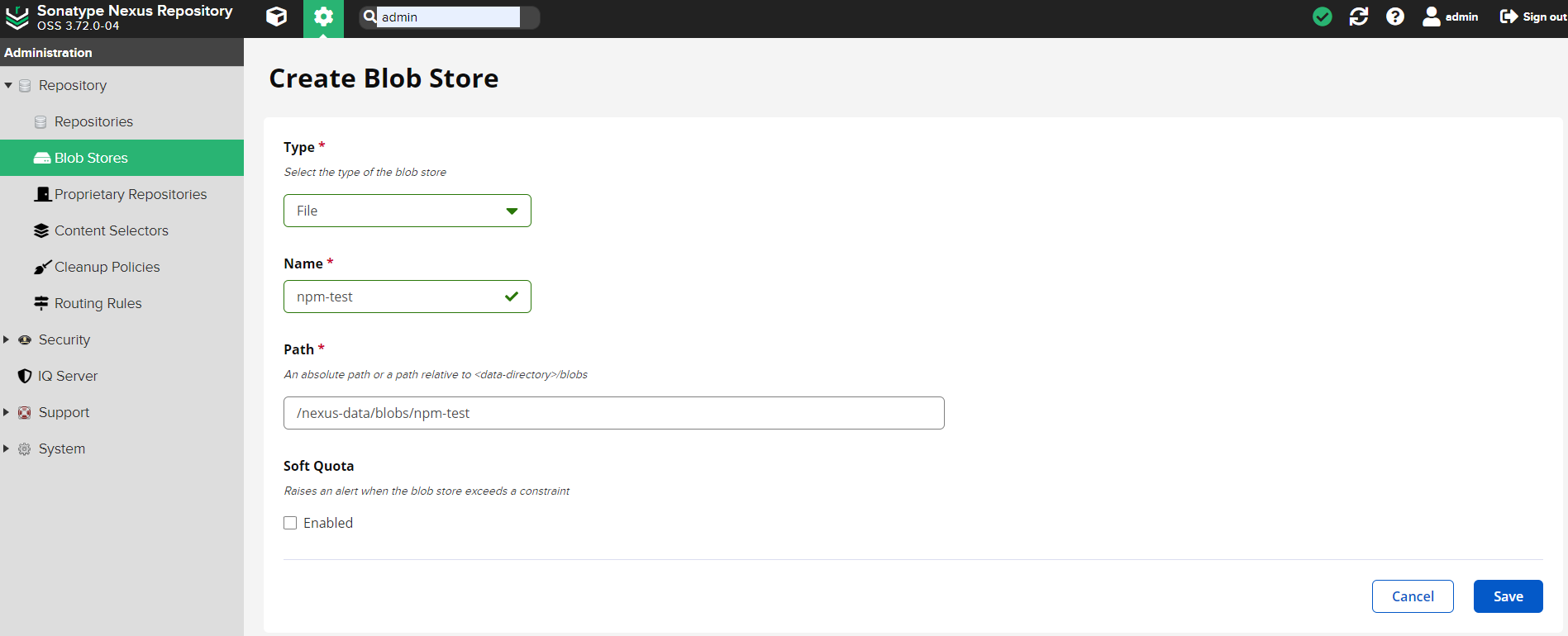 1. nexus Blob Stores 생성