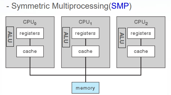 마스터 프로세서가 없고 서로 독립적이고 대등한 관계, 듀얼 코어 CPU 같은 것의 방법, 최근의 컴퓨터 운영체제에 사용