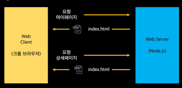 리엑트는 페이지가 1개라서 더 이상 서버에서 가져올 수 없다. 대신 서버가 아니고 리액트 앱이 알아서 페이지를 업데이트 한다. 브라우저가 알아서 처리하면 되니까 서버랑 통신하는 시간 없이 빠르게 전환할 수 있다. 그 외의 필요한 데이터들만 서버를 통해 가져온다.