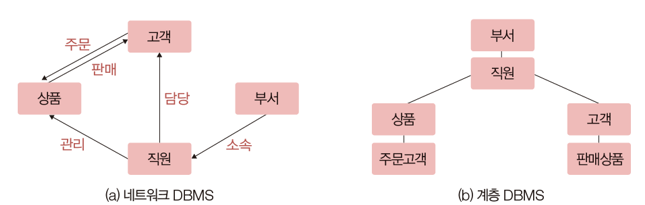 네트워크 DBMS: 데이터베이스를 그래프 형태로 구성, ex) IDS(Integrated Data Store)